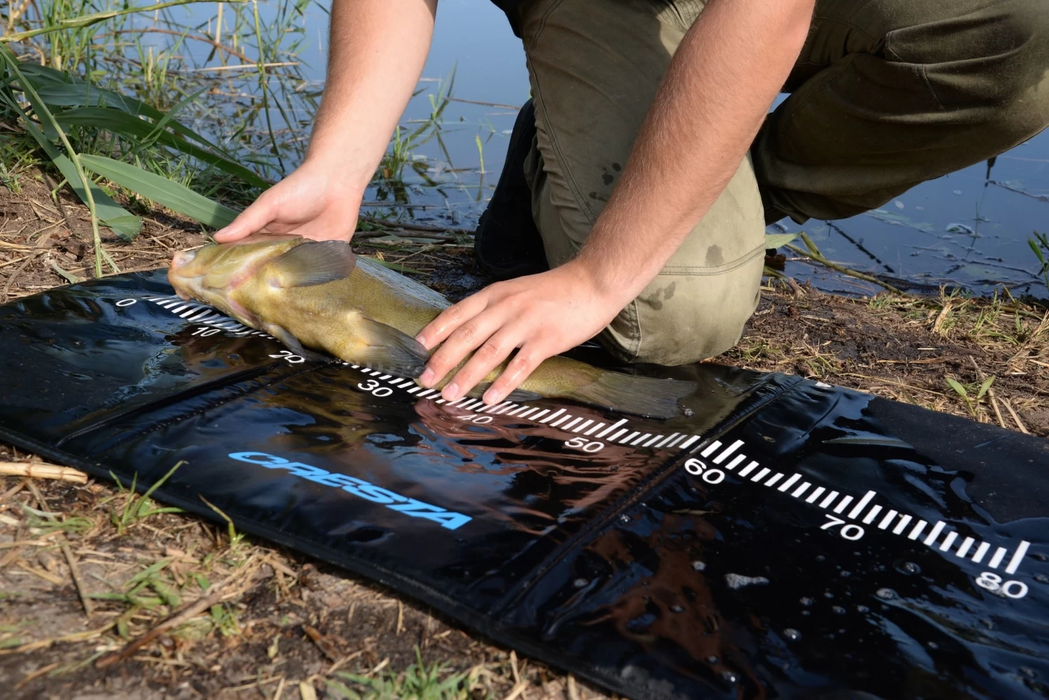 Deze lichte onthaakmaat is voorzien van een geprint meetlint, waardoor het veilig onthaken en opmeten van de vangst snel en gecontroleerd kan plaatsvinden. Bovendien zorgt het meetlint voor ‘bewijs van ware grote’ bij het nemen van een foto. Voor een optimale bescherming van de vis helpt het de mat vooraf te bevochtigen. De Rulermatt kan worden opgevouwen tot een compact formaat, passend in een leefnettas of carry-all.