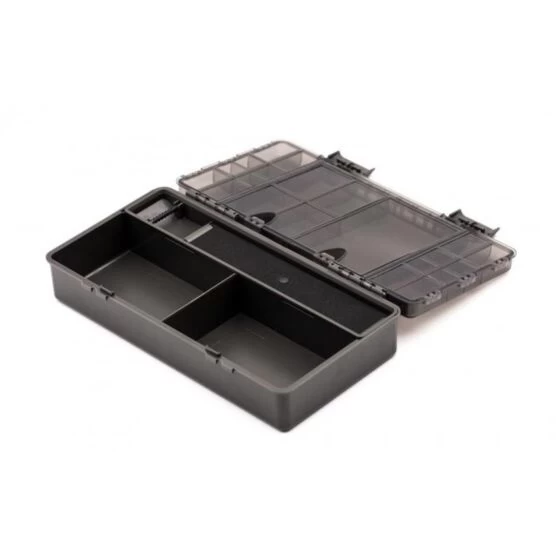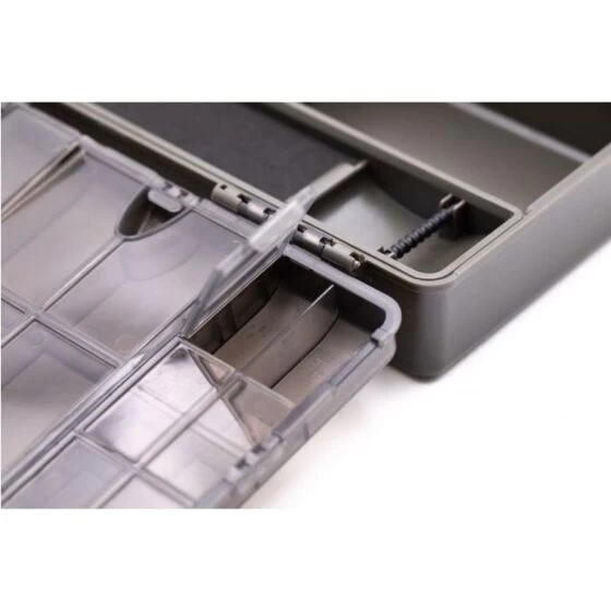 Binnenin de box zijn er twee grote compartimenten, met vaste verdelers, die perfect zijn voor rig tools, hook link spools en dergelijke. Het heeft ook een verwijderbare rig tray, compleet met pinnen, die gebruikt kan worden om tot acht voorgebonden rigs op te bergen (zoals de BASIX Ready Tied Hair Rigs), en daaronder is nog een lang opbergvak.