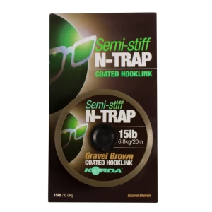 Hoewel de originele Hybride onderlijn veel opvolgers heeft gekend, meende het Korda ontwikkelingsteam dat het toch nog beter kon. Het product dat hieruit resulteerde, de N-Trap Soft, is een cumulatie van twee en een half jaar van ontwikkeling en intensief testen. Dus, wat maakt nu, dat N-trap het beste verkrijgbare gecoate onderlijnmateriaal is. Nu, N-trap is gemaakt met een schuurbestendige zeer speciale, matte coating die ook nog eens gemakkelijk te strippen is. De kern bestaat uit speciale Dyneema draden die zo gekleurd zijn dat deze perfect passen bij de kleur van de coating dit in tegenstelling tot alle andere verkrijgbare onderlijnen.