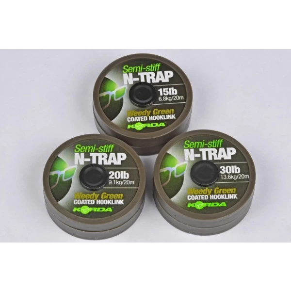 Het bekende Korda N-Trap afstripbare onderlijnmateriaal is er nu ook in een speciale Semi Stiff versie. Deze is aanzienlijk stijver dan de soft versie, en leent zich dan ook uitstekend voor het knopen van (semi) stiff-rigs.