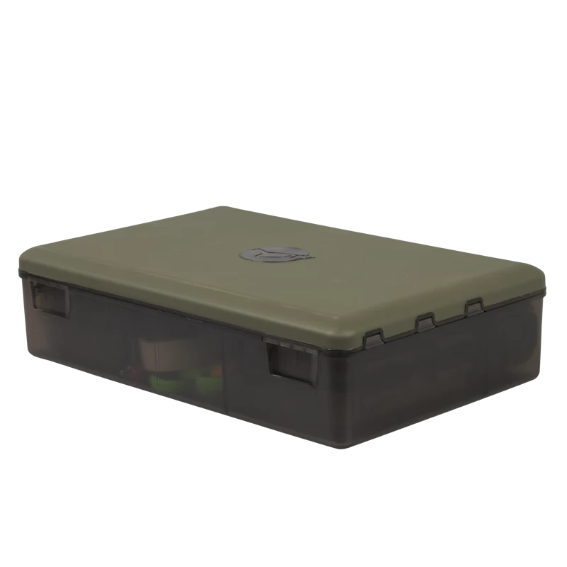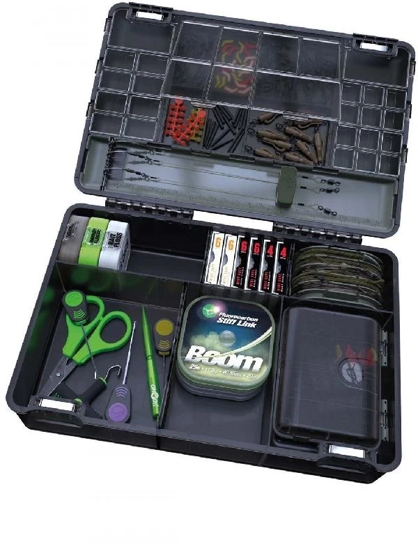 Korda Tackle Box die uitgevoerd is met een extra handige sluiting. Deze tacklebox is voorzien van verschillende compartimenten die veilig afgesloten kunnen worden. Daarnaast biedt deze tacklebox ruimte aan allerlei rig accessoires en dankzij de overzichtelijke indeling heeft u alles snel voor handen.