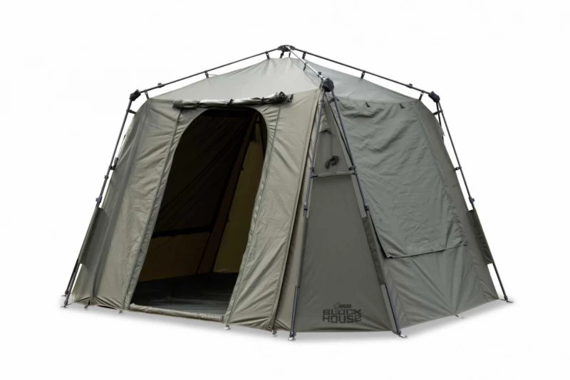Alweer een eersteklas ontwerp van Nash! De gepatenteerde Blockhouse daagt het klassieke ontwerp van de bivvy uit met een unieke combinatie van bruikbare ruimte meer hoogte en een afgesloten capsule in een geheel dat binnen enkele seconden rechtop staat.