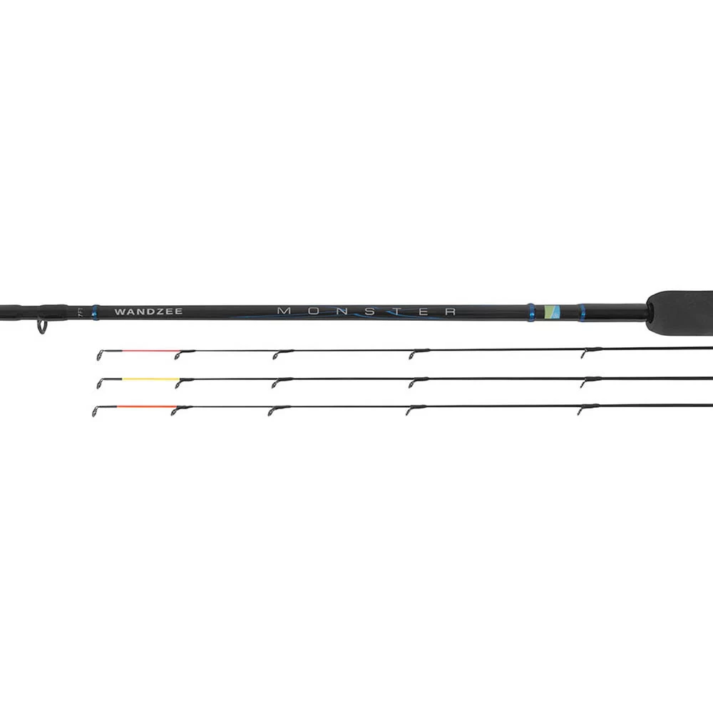 Een gloednieuwe geüpdate versie van de extreem populaire Monster range aan hengels. Met belangrijke verbeteringen zoals 2,5 mm carbon feedertoppen, SeaGuide geleideogen, DPS molenhouders en een verbeterde actie zullen deze hengels zeker populair worden in 2019. Binnen de range vind je hengels voor elke discipline die je in kunt zetten op commercials. Speciale kenmerken Geheel doorgaande actie Hoge kwaliteit SeaGuide geleideogen Platte handgreep Hoge kwaliteit carbon blank Monster X 7ft Wandzee De Monster X 7 voets Wandzee is ontworpen voor de kleinere, intieme wateren waar zeer korte worpen vaak noodzakelijk zijn. De hengel is eendelig uitgevoerd, zodat je nadat de feedertop verwijderd is, de hengel gemakkelijk op kunt bergen en ook weer snel op kunt bouwen. De eendelige uitvoering geeft de hengel een fraaie doorgaande actie, zodat je met deze hengel allerlei vissoorten in velerlei afmetingen kunt landen. De hengel is perfect te gebruiken voor worpen tot 25 meter, waarmee het de ideale hengel is voor het vissen achter de lijn die je met de vaste hengel kunt bereiken en voor worpen tegen de tegenoverliggende oever op een snake lake. Wordt geleverd met drie feedertoppen, 0,75, 1 en 1,5 ounce. Monster X 9ft Carp Feeder Een gloednieuwe model voor 2019, de Monster X 9ft Carp Feeder is de perfecte hengel voor korte worpen tot rond de 30 meter, waarmee het een ideale hengel is voor worpen tegen de tegenoverliggende oever op langwerpige commercials. De hengel beschikt over een doorgaande actie, waarmee ze ideaal te gebruiken is voor het vissen op hard vechtende karpers met technieken zoals de method feeder en de pellet feeder. Wordt geleverd met drie feedertoppen, 0,75, 1 en 1,50 ounce. Monster X 10ft Carp Feeder De Monster X 10ft Carp feeder is een zeer veelzijdige hengel, perfect voor de korte worpen op snake lakes of de wat langere worpen tegen eilanden op afstanden van 30 tot 35 meter. Zoals alle hengels in de range heeft ook dit model een vergevende, doorgaande actie, toch heeft ze voldoende kracht in het onderste deel om goed te kunnen werpen en vis uit te kunnen drillen. Wordt geleverd met drie feedertoppen van 1, 1,5 en 2 ounce. Monster X 11ft Carp Feeder Dit is een fantastische hengel voor die situaties waarbij wat verdere worpen tot rond de 35 – 40 meter noodzakelijk zijn, dit dankzij de extra kracht die in het onderste deel van de hengel te vinden is. De Monster X 11 ft Carp feeder is ook een zeer veelzijdige hengel, hoewel de hengel met name ontwikkeld is voor het vissen op karper op commercials, maakt de actie van de hengel het ook mogelijk om ze in te zetten bij de visserij op brasem en blankvoorn. Wordt geleverd met drie toppen van 1, 1,5 en 2 ounce. Monster X 12ft Method Carp Feeder De zwaarste feederhengel in de Monster X range is de 12ft method carp Feeder, deze hengel is perfect te gebruiken wanneer grotere voerkorven en extra werpafstand noodzakelijk zijn. De hengel is ontworpen voor worpen tot 60 – 70 meter waarbij je je richt op grotere vissen, de extra kracht in de gehele blank maakt het mogelijk om met deze hengels grotere voerkorven te werpen en grotere vissen onder controle te houden bij het landen ervan. Deze hengel is ook geschikt om te gebruiken op rivieren en grotere, stilstaande wateren, voor het vissen op vissoorten zoals brasem, barbeel en kopvoorn. Wordt geleverd met drie feedertoppen van 1,5, 2 en 2,5 ounce. Monster X 11ft Pellet Waggler Dit model is speciaal ontworpen om tegemoet te komen aan de vereisten van het vissen met pellet wagglers, waarbij kortere worpen naar plekken zoals bij eilanden een must zijn. De korte lengte van elf voet maakt dat je de worp met de dobber optimaal kunt controleren, net als het moment dat de vis boven het landingsnet gebracht wordt. Net zoals de andere modellen in de Monster X range beschikt deze hengel over een doorgaande actie die voorkomt dat vis verloren gaat tijdens de dril en/of de haak losschiet tijdens het drillen.