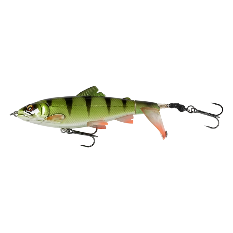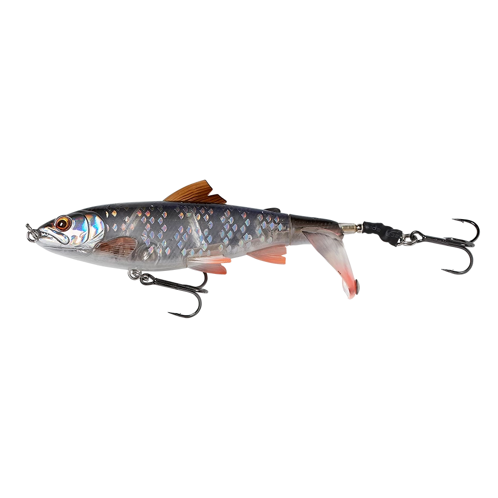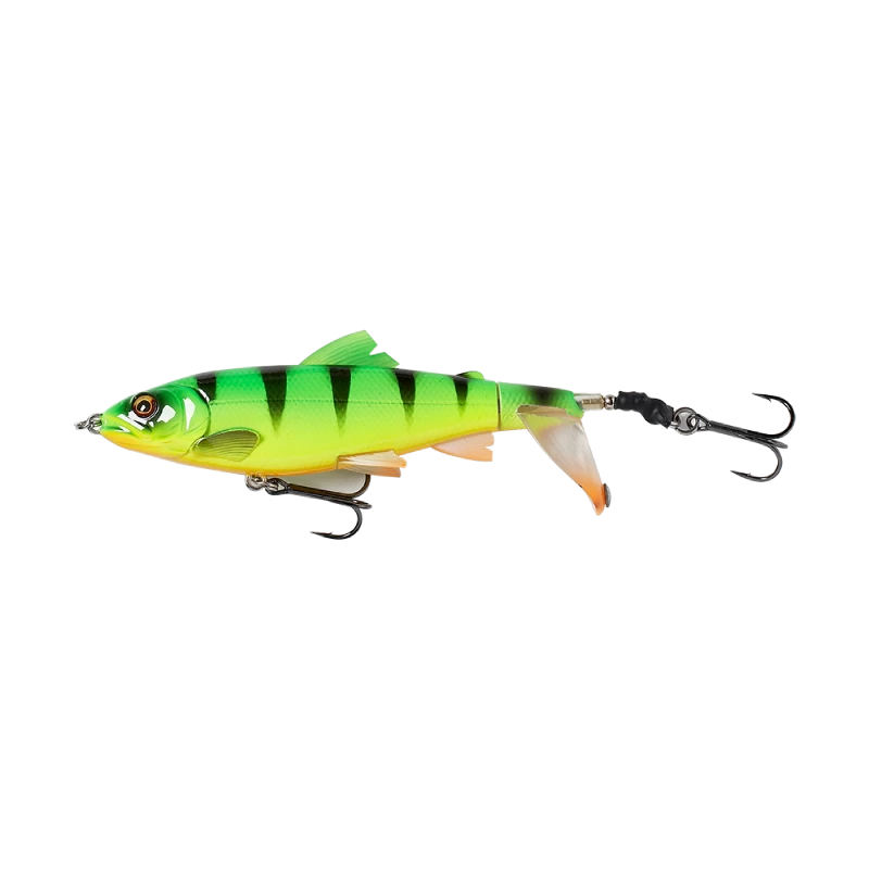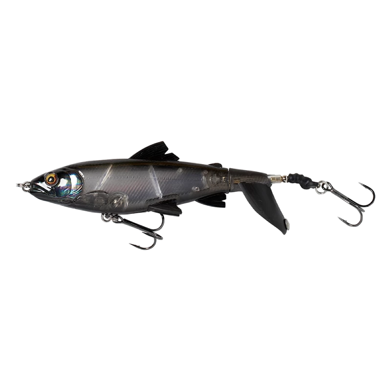 Gebaseerd op een 3D Scan van een baby forel, met prachtige details en een realistisch profiel. De draaiende staart, slaat in het water, het creëren van een luid plopping geluid, het verlaten van een super wake en bubble spoor achter het kunstaas. De kleine metalen klinknagel in de staart versterkt het geluid en spuugt het binnen roepen van de grote roofvis!