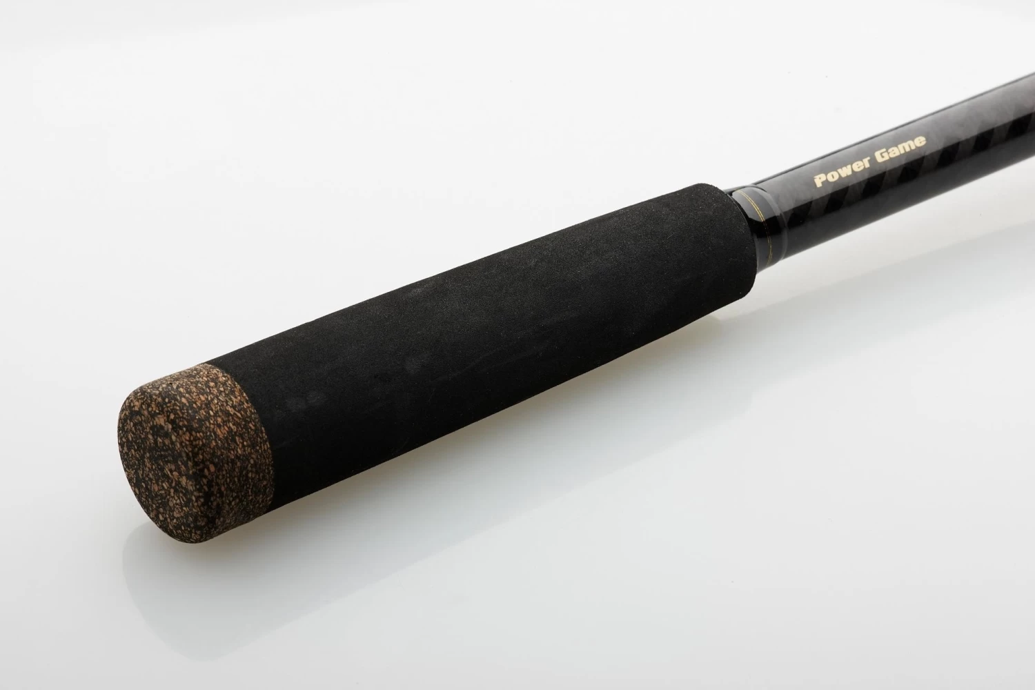 Power Game, hengels ontworpen voor groot kunstaas, perfect uitgebalanceerd voor een optimaal gevoel met een snelle krachtige actie, om middelzwaar tot zwaar kunstaas te hanteren en grotere vissen veilig te bespelen zonder dat de haak lostrekt of de lijn breekt. Volledig achterhandvat voor comfort. Optimaal voor groot kunstaas, swimbaits, spinnerbaits, gliders en jerkbaits.