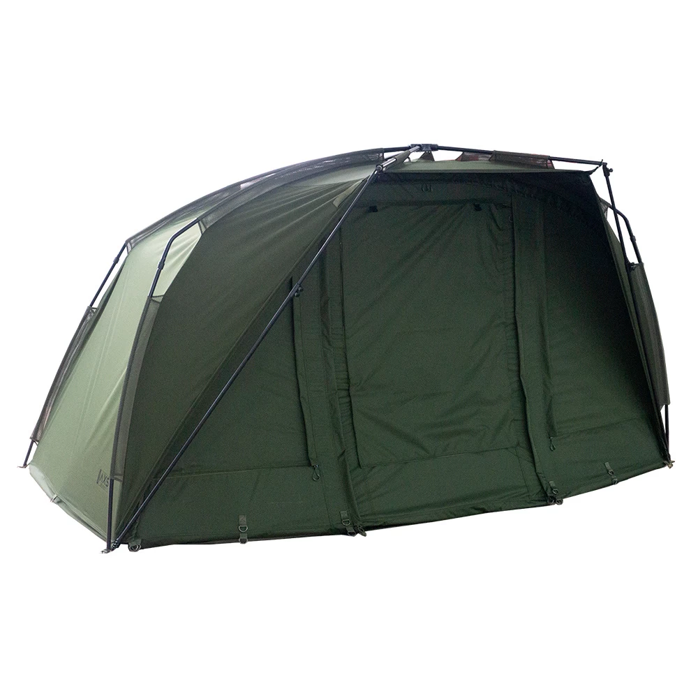 De geïntegreerde piek met regenbeschermkap biedt nog meer bescherming en is een perfecte maat om uw bedchair en tassen tegen de elementen te beschermen. Muggengaas panelen zowel voor als achter en interne opbergzakken. De Bivvy weegt 9,2kg en word geleverd met twee 48” stormpoles, Heavy Duty grondzeil, vier ventilatie openingen, grote compressie tas en zware T-Haringen.