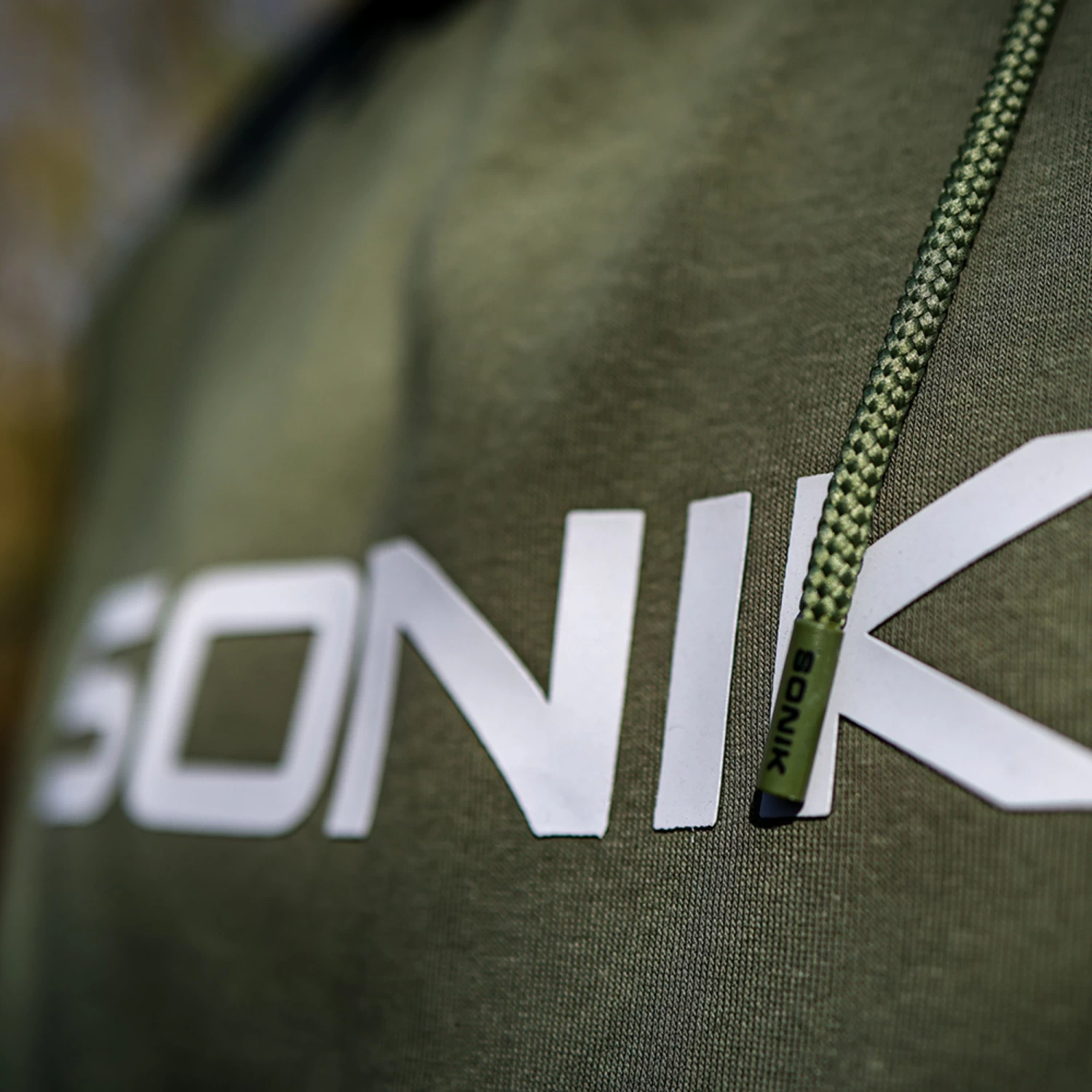 Stijlvol, comfortabel, zeer praktisch en ontworpen met een gedetailleerde dubbellaagse capuchon voor extra comfort. De Sonik Hoody Green is gemaakt van een driedraads fleece, 300GSM bestaande uit 80 procent katoen en 20 procent polyester, wat zorgt voor warmte en comfort. De Hoody heeft elastische manchetten, een logo achterop en een hoge logoprint op de voorkant, een capuchon met trekkoord en een gemakkelijk toegankelijke voorzak in handwarmerstijl. Rubberen badge op de zoom. Verkrijgbaar in vier maten, medium, large, XL en XXL.