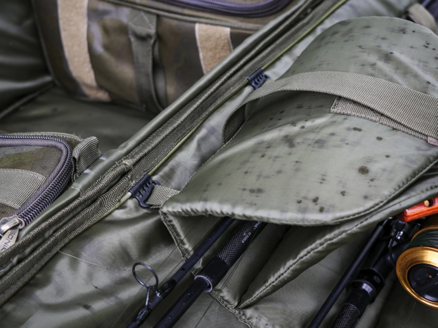 SONIK introduceert het ultieme 3-Rod Transport System. Geschikt om drie 9 0f 10 ft semi telescopische hengels in op te bergen. Dankzij het innovatieve aanpasbare systeem is het mogelijk om hengels met verschillende lengtes handgrepen in op te bergen. Door de plaatsing van de hengels aan de buitenzijde van de tas kun je gemakkelijk bij de rest van je tackle. De 3 verwijderbare tassen in het systeem passen precies onder je stretcher. De tas is opvouwbaar en dus gemakkelijk op te bergen. Hij is gemaakt van ons duurzame 600d SK-TEK camouflage materiaal met Hd waterdichte coating. De tas is voorzien van 2 compressie banden waar extra accesoires aan vast gemaakt kunnen worden. De draagbanden kun je zo verstellen dat de tas als rugak gerdagen kan worden.