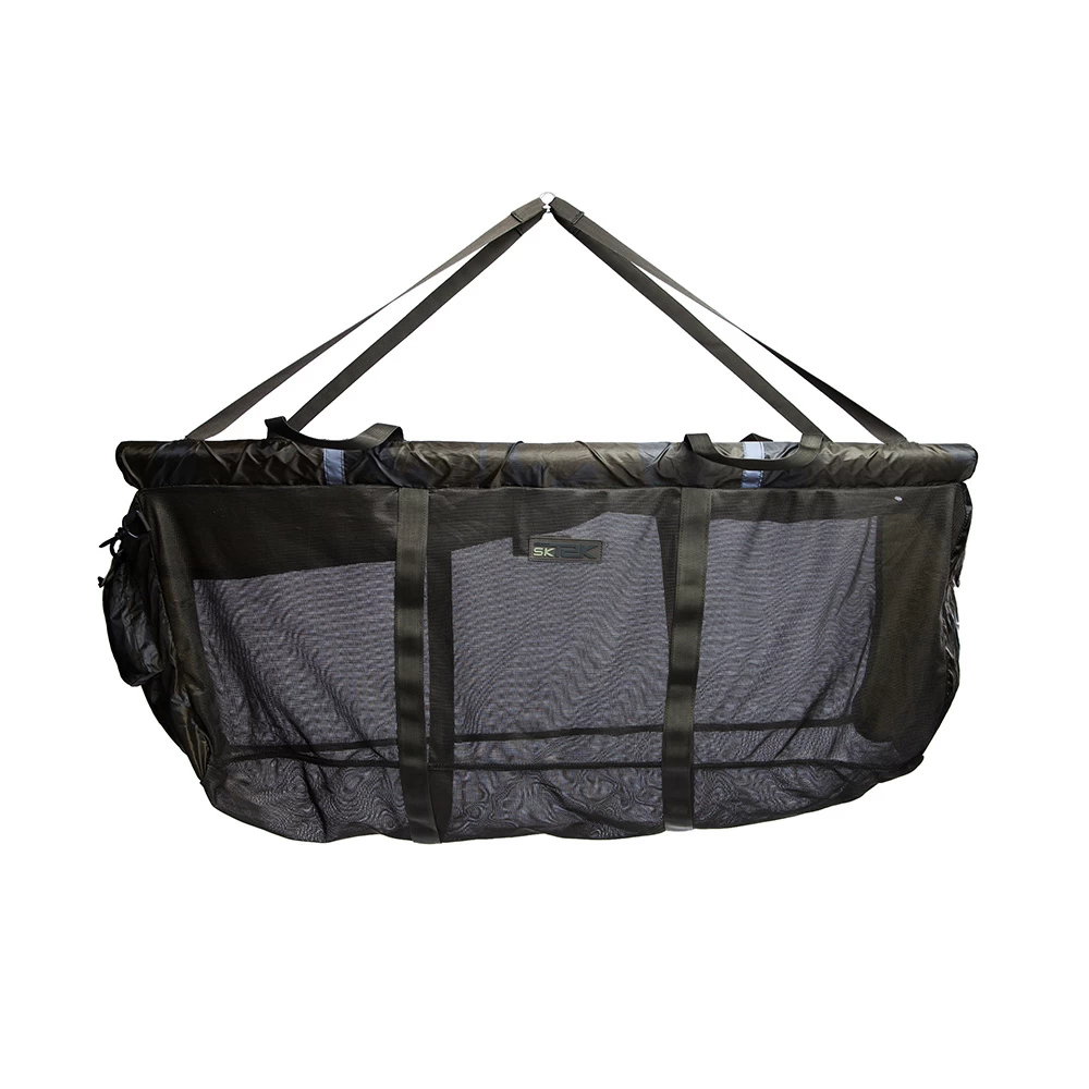 Verkrijgbaar in standaard en groot formaat, deze zijn ontworpen als dual-purpose floating weight sling en als kort durende bewaarzak. Volledig gaas zijkanten en bodem waardoor het water er snel uit loopt en is zo ontworpen dat vis in het midden blijft liggen. De stof heeft onze SK-TEK-camouflage kleur om de vissen rustig te houden. Alle hendels zijn dubbel versterkt en er is ondersteuning voor het gaas gemaakt om de vissen maximaal te ondersteunen. Er zijn ook vier reflecterende stips op de drijvers gemonteerd. Word geleverd met 5 meter koord met een bankstickbevestiging. De brede weeglussen bieden alles wat u nodig heeft voor veilig en gemakkelijk wegen zodat de vis maar kortstondig uit het water is.