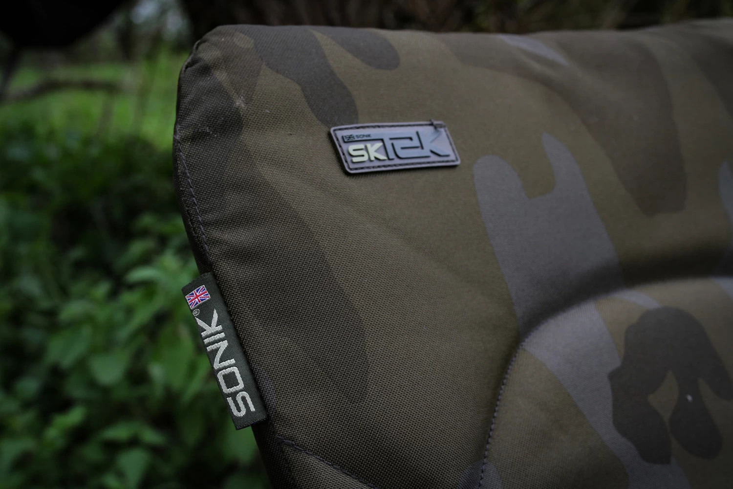 De SK-TEK Lite stoel is perfect voor de mobiele visser. Met een ultralicht aluminium frame van slechts 3,5 kg. De bekleding is uitgedost in onze SK-TEK-camouflage en is gemaakt van slijtvast 600D-materiaal met PVC binnenkant. De gewatteerde rug en neopreen armleuningen maken het uiterst comfortabel en compact opgevouwen afmetingen maken het ultra draagbaar. Opklapbare achterpoten maken het mogelijk de stoel indien nodig op de zijkant van een bedchair te gebruiken en twee klittenbandriemen kunnen worden gebruikt om te voorkomen dat stoelpoten zich tijdens het dragen ontvouwen.