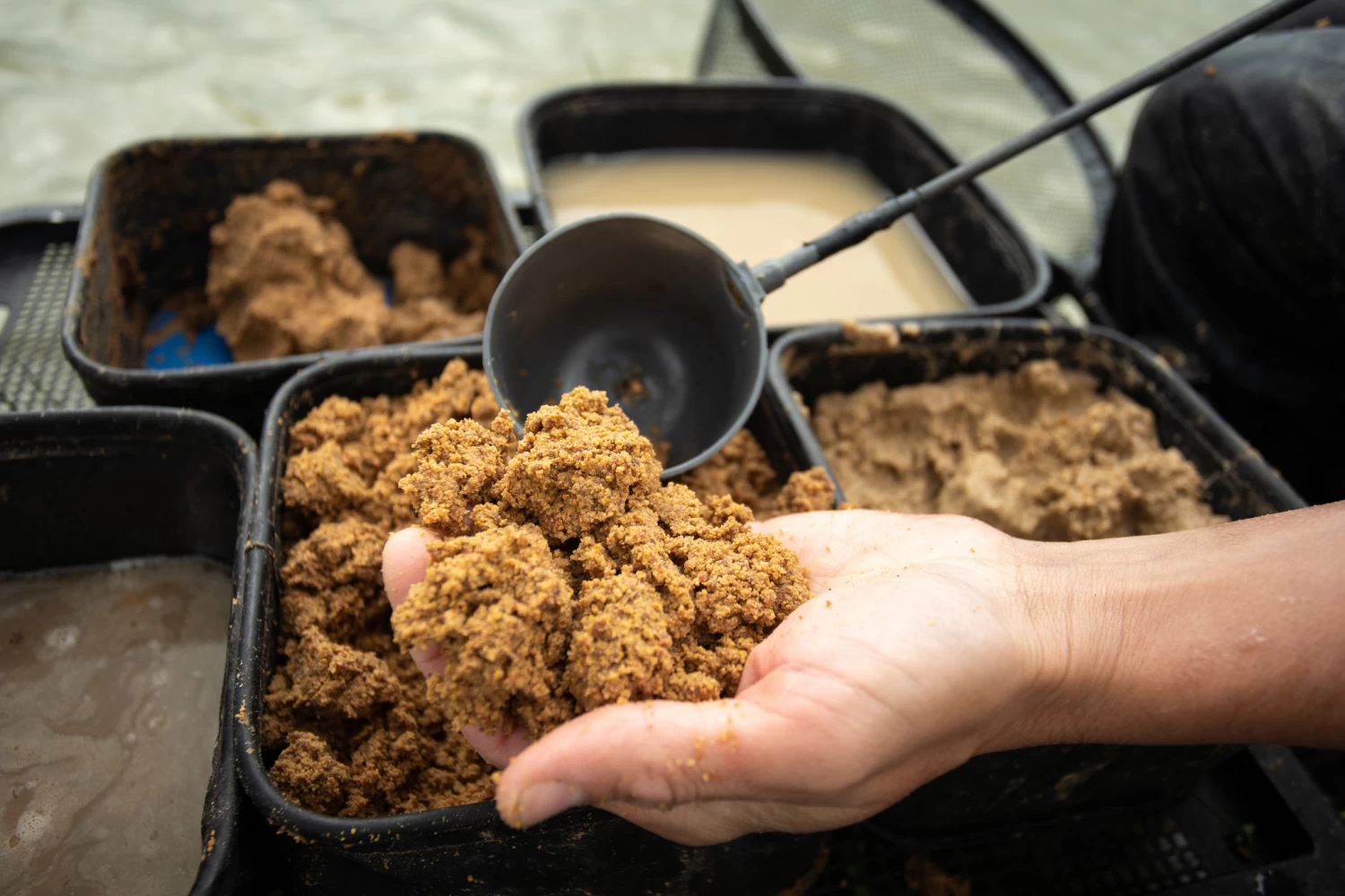 Krill & Squid is uiterst eenvoudig te mengen. Leeg de inhoud in een grote mengkom of bucke. Gebruik een 2pint bait tub als maatstaf, vul met water en voeg toe aan het droge groundbait, meng grondig en zorg voor een gelijkmatige verdeling in de mix. Geef het aas de tijd om het water te absorberen. Stel het mengsel nauwkeurig af op uw wensen en haal het door een zeef om eventuele klonten te verwijderen.