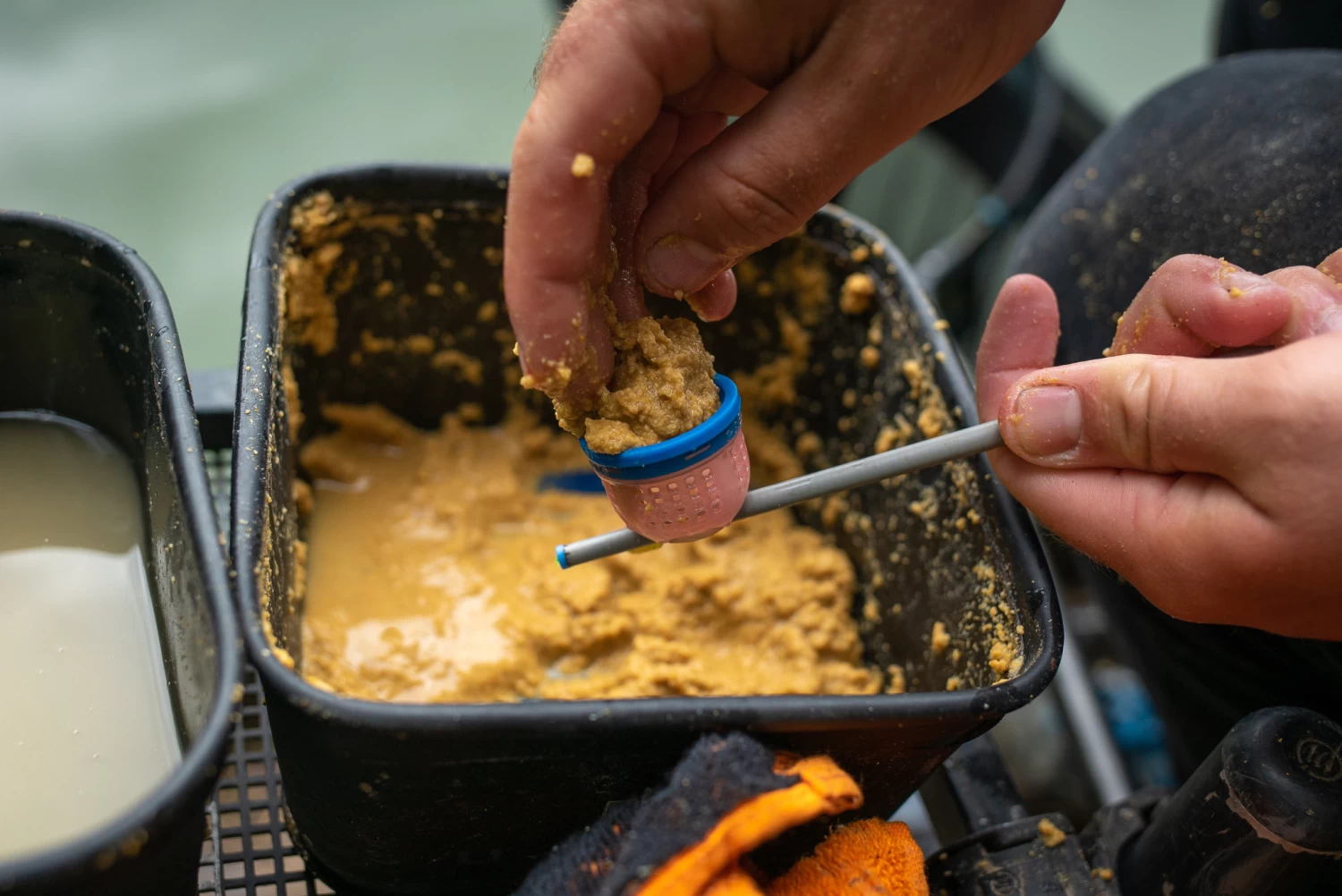 Tijdens het vissen kunnen zon en wind het groundbait een beetje uitdrogen, om dit tegen te gaan kun je het gemengde groundbait afdekken met een vochtige handdoek of als het toch uitdroogt gewoon een beetje meer water toevoegen en opnieuw mengen.